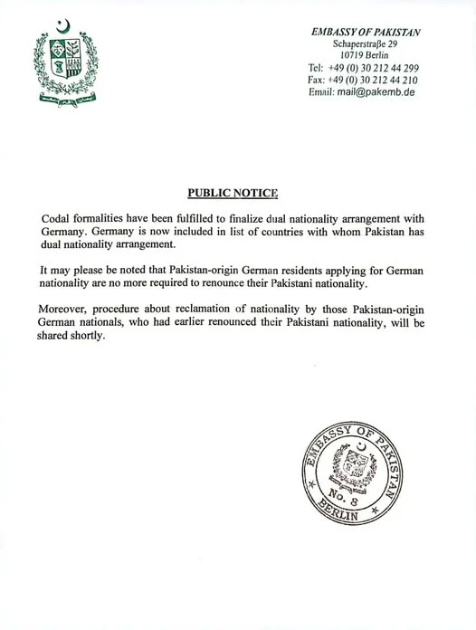 Until now, Pakistanis applying for German citizenship were generally required to renounce their Pakistani nationality, as Germany was not included in Pakistan’s list of dual-citizenship partner countries. With the latest decision, this requirement has been removed. Pakistan has formally added Germany to its dual nationality framework, allowing eligible individuals to hold both Pakistani and German citizenship simultaneously.